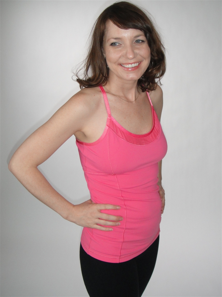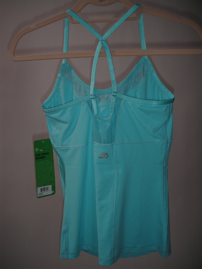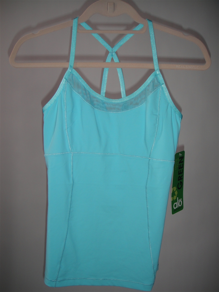 ALO tanks runs small, so we’d suggest ordering a size up, depending on how snug you like the fit. Tenesha is wearing size M, Michelle is wearing size XS (pic with mat)