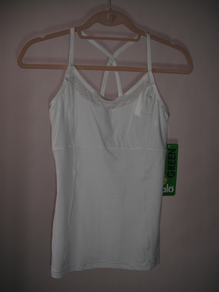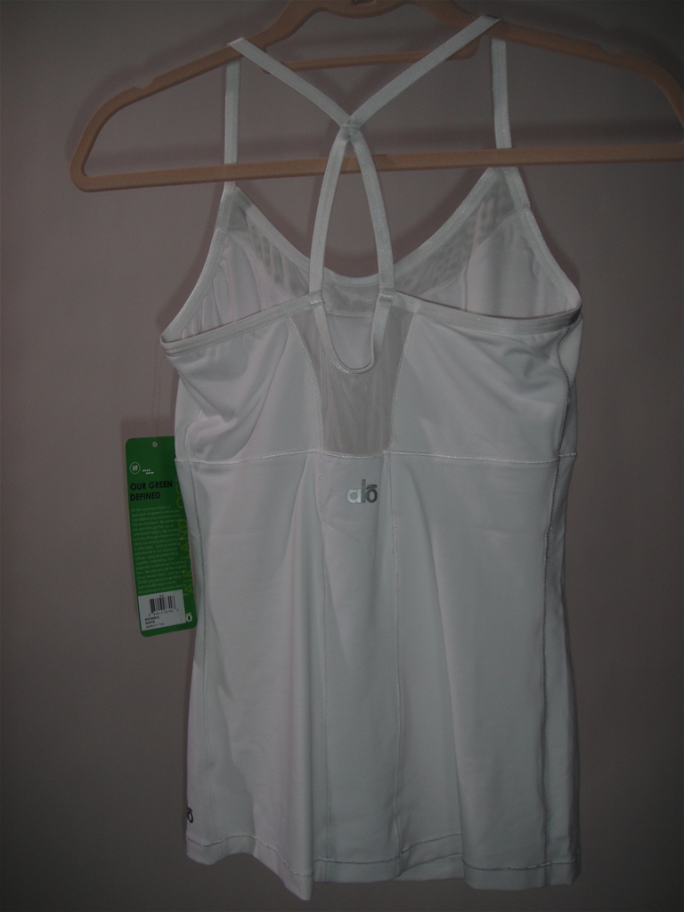 The ALO Serenity Tank is feminine, sexy, and has a scoop neck bra with back elastic crisscross straps and mesh detailing at front neckline and back for quick cooling.